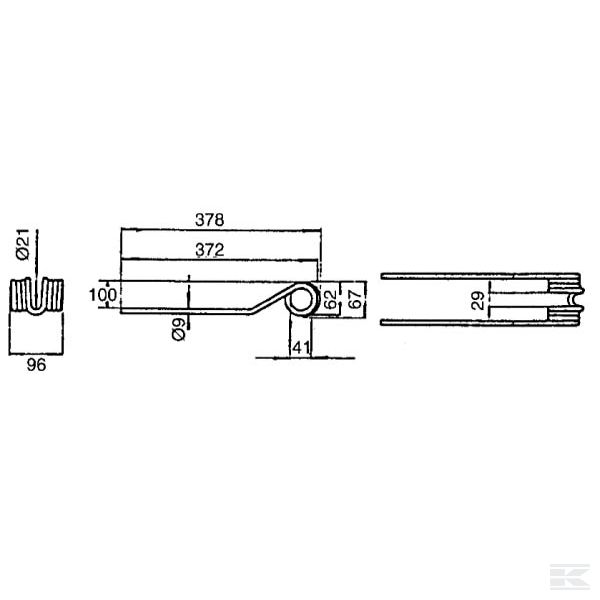 Rotējošā grābekļa zars, 378x96 Ø9 mm