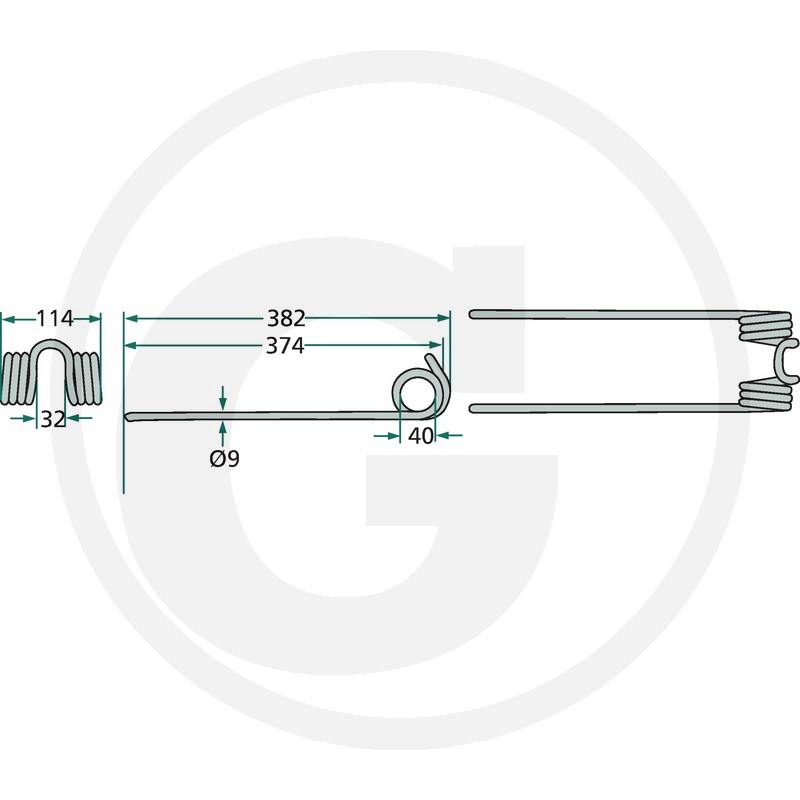 Rotējošā grābekļa zars, 382x114 Ø9 mm