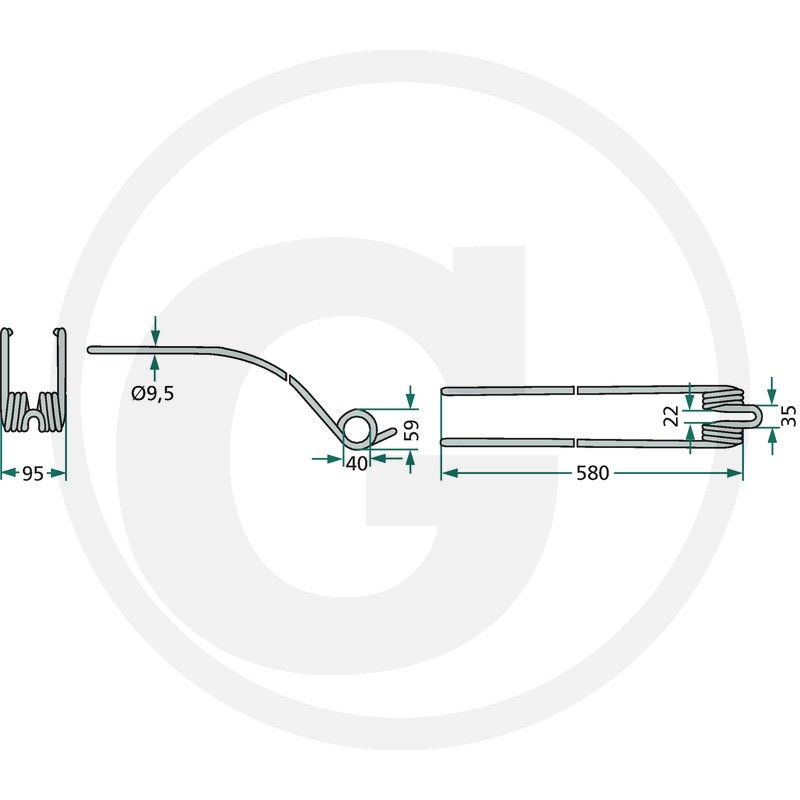 Rotējošā grābekļa zars, 580x95 Ø9,5 mm