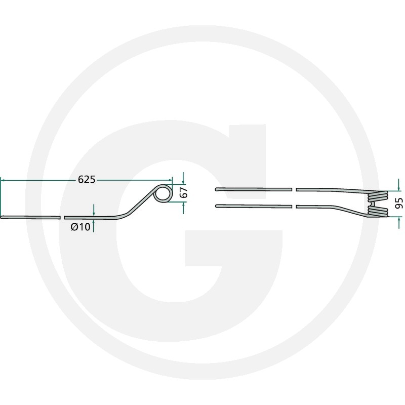 Rotējošā grābekļa zars, 625x95 Ø10 mm, labā puse ārpuse