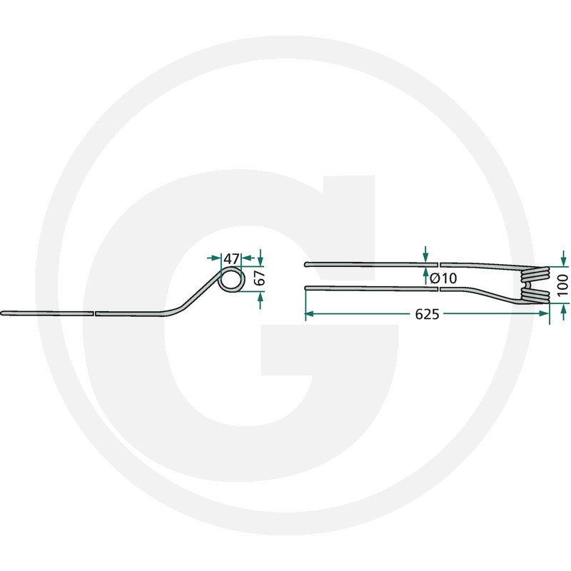 Rotējošā grābekļa zars, 625x95 Ø10 mm, kreisā puse ārpuse