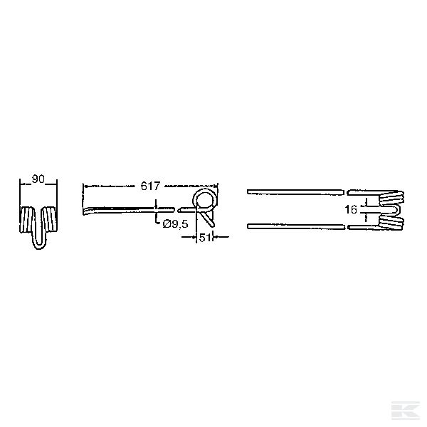 Rotējošā grābekļa zars, 617x90 Ø9,5 mm
