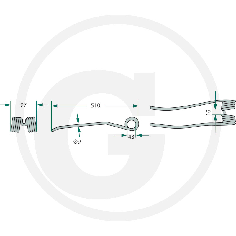 Rotējošā grābekļa zars, 510x97 Ø9 mm
