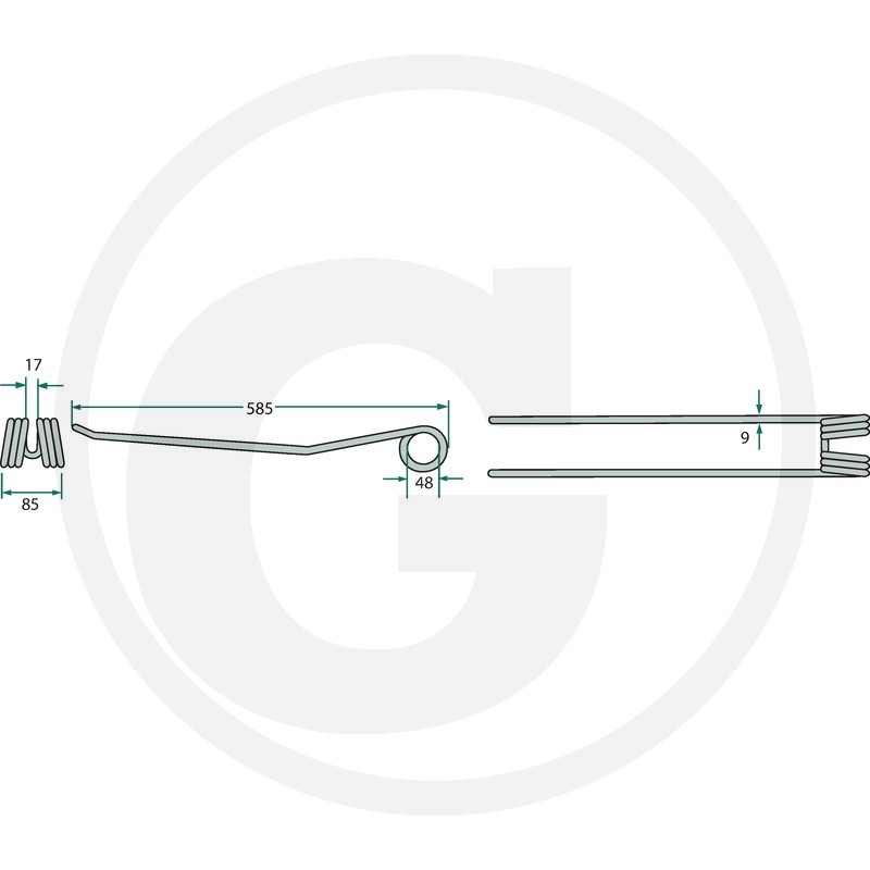 Rotējošā grābekļa zars, 585x85 Ø9 mm