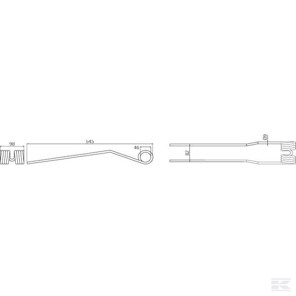 Rotējošā grābekļa zars, 545x98 Ø9 mm