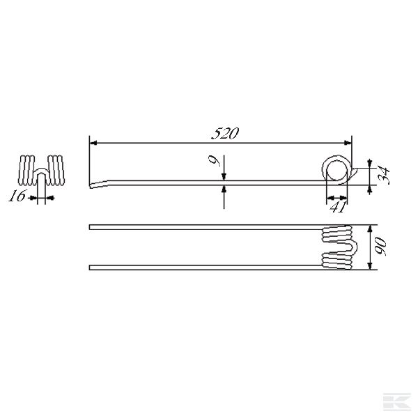 Rotējošā grābekļa zars,520x87 Ø9 mm