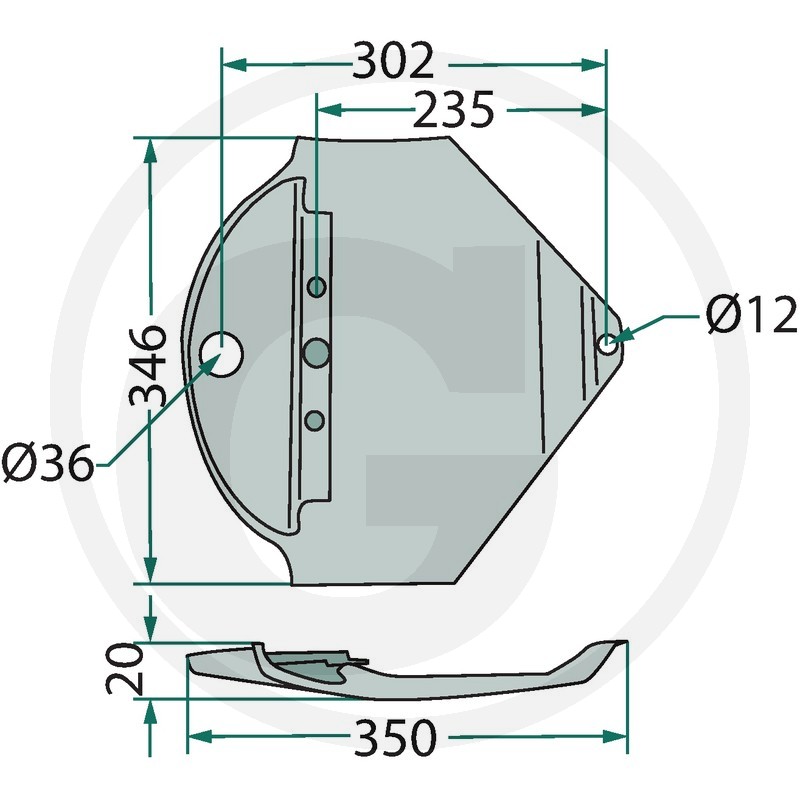 Pļaujmašīnas pēda, 350x346x20 mm, kreisā puse