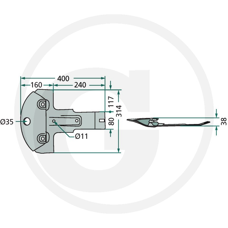 Pļaujmašīnas pēda, 400x314x38 mm