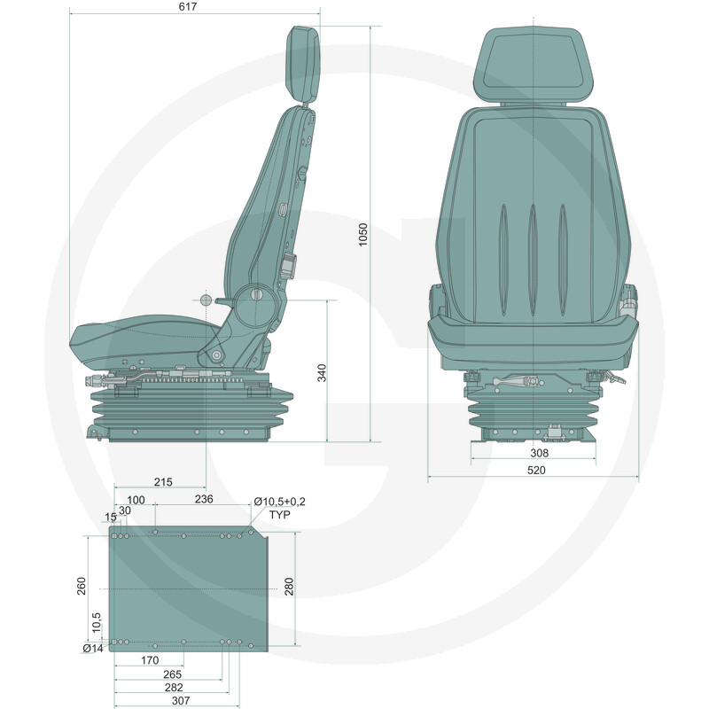 Šis mehāniskais sēdeklis ir paredzēts izmantošanai lauksaimniecības, būvniecības un industriālajā tehnikā, nodrošinot stabilu un komfortablu sēdēšanu pat nelīdzenā reljefā. Izturīgā konstrukcija ar auduma apdari un ergonomisku formu nodrošina labu gaisa caurlaidību un ilgstošu lietošanas komfortu.