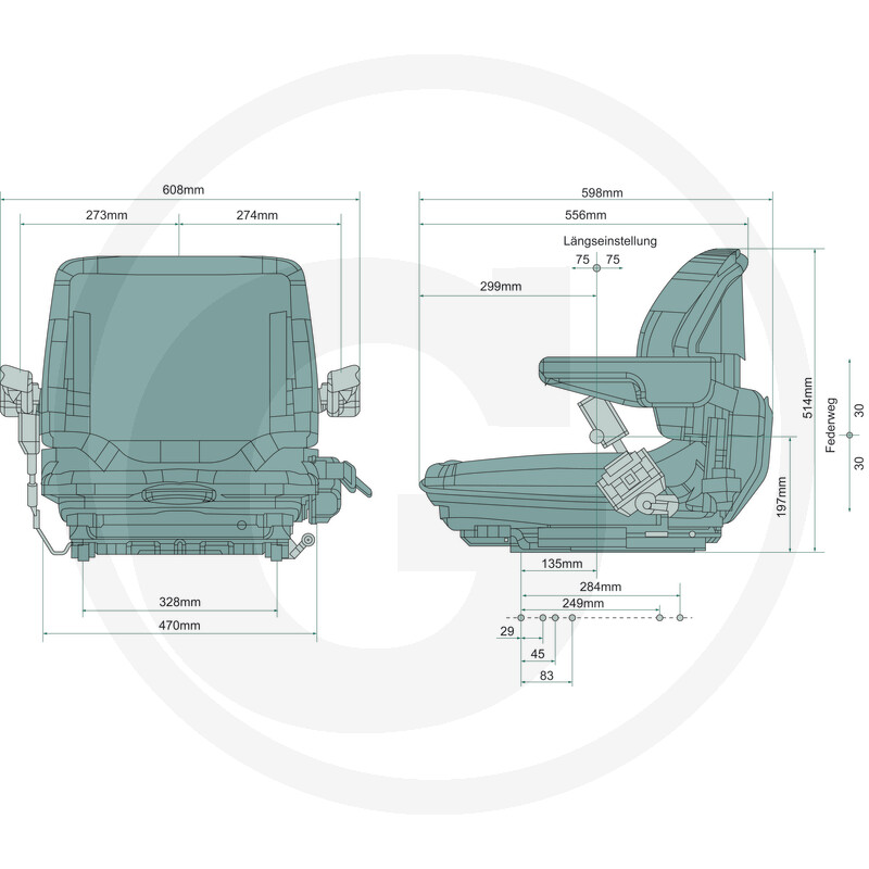 Grammer MSG20 ir mehāniskās piekares komforta sēdeklis, izstrādāts, lai nodrošinātu maksimālu ergonomiku un komfortu ikdienas darbā, īpaši iekrāvējiem, traktoriem un industriālajai tehnikai. Sēdeklis ir aprīkots ar 60 mm piekares gājienu, hidraulisku amortizatoru un mehānisku svara regulēšanu diapazonā no 50 līdz 130 kg, kas ļauj precīzi pielāgot sēdvietu katram operatoram.