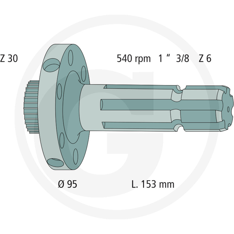 Jūgvārpstas gals 1 3/8'', 6 šlices Fendt, Massey Ferguson